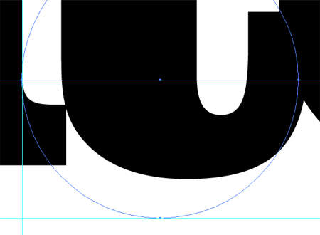 Đường Guide thứ ba được đặt sẽ nằm ở phần thấp nhất của cạnh thẳng của chữ ”I”. Tạo mới một hình tròn lớn, đặt nó nằm song song với nét ngoài của chữ “I” như hình minh họa trên.