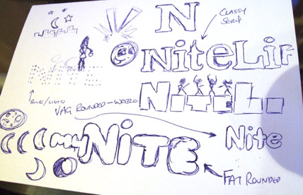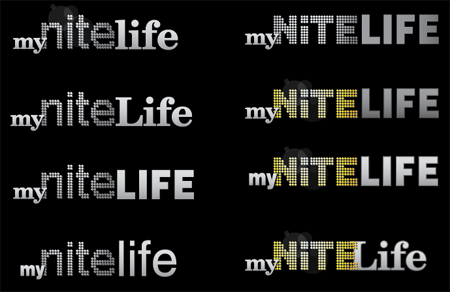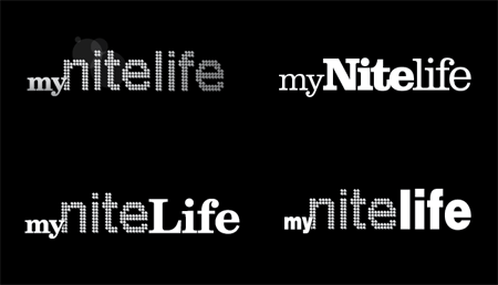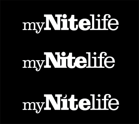 Phiên bản logo được chọn toàn bộ đều sử dụng dạng chữ Slab-Serif, điểm này đã được tôi tập trung vào và chỉnh sửa đôi chút để tạo thành 2 phiên bản logo mới. Chỉnh sửa đầu tiên là giảm bớt khoảng cách giữa các cặp ký tự chữ trong logo ( Hiệu chỉnh Kerning) làm cho các ký tự nối vào nhau. Chỉnh sửa thứ hai là thay đổi dấu chấm trên ký tự ”I” trong từ Nite thành hình trăng lưỡi liềm để miêu tả yếu tố thời gian ban đêm.